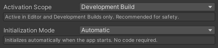 | Development Build Only | Operates only on devices with a Development Build |