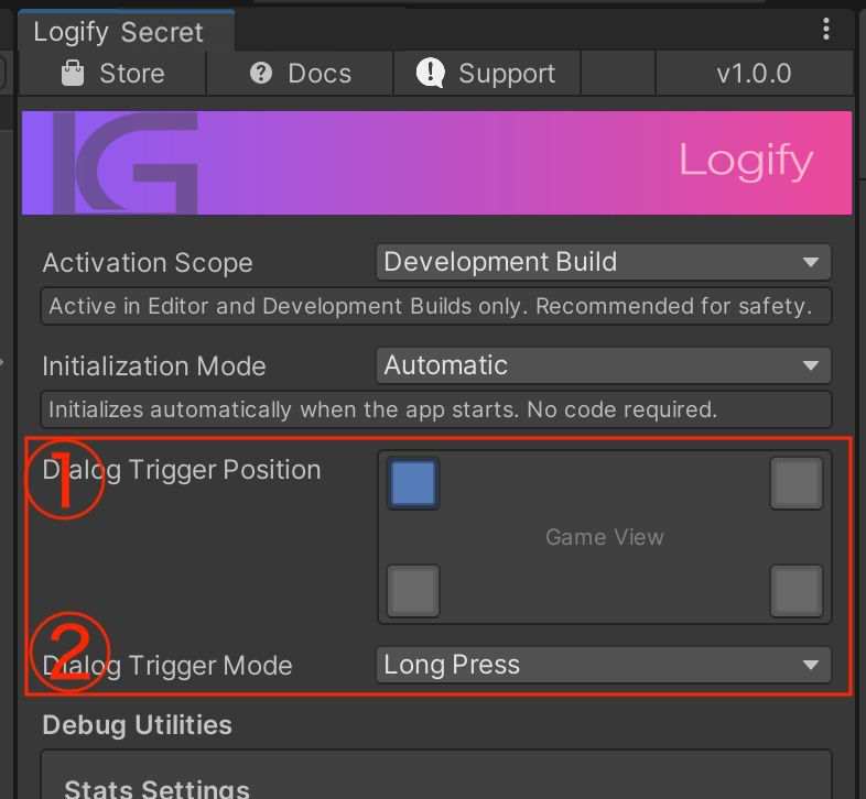 Settings: Window > Logify > Settings