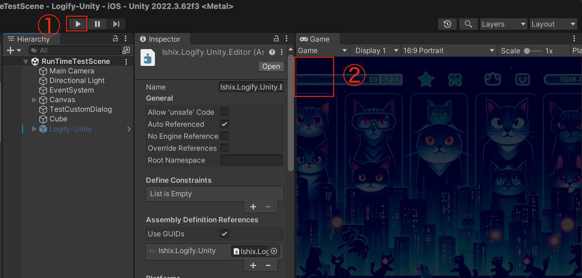- Open any scene in the Unity Editor and enter Play mode.