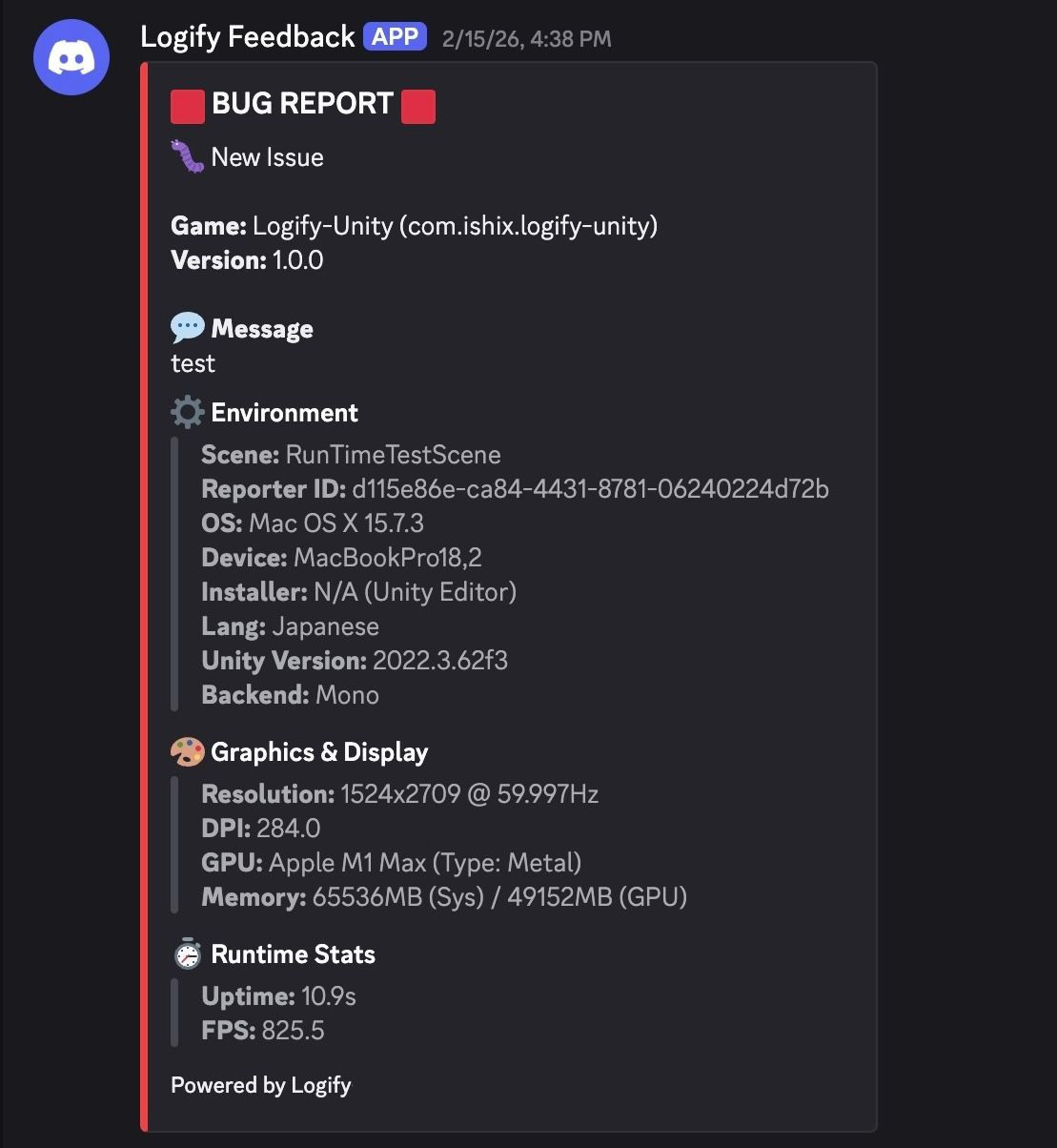 - マルチ連携: ゲーム内から直接 Slack / Discord / メール へ報告を送信[*1]