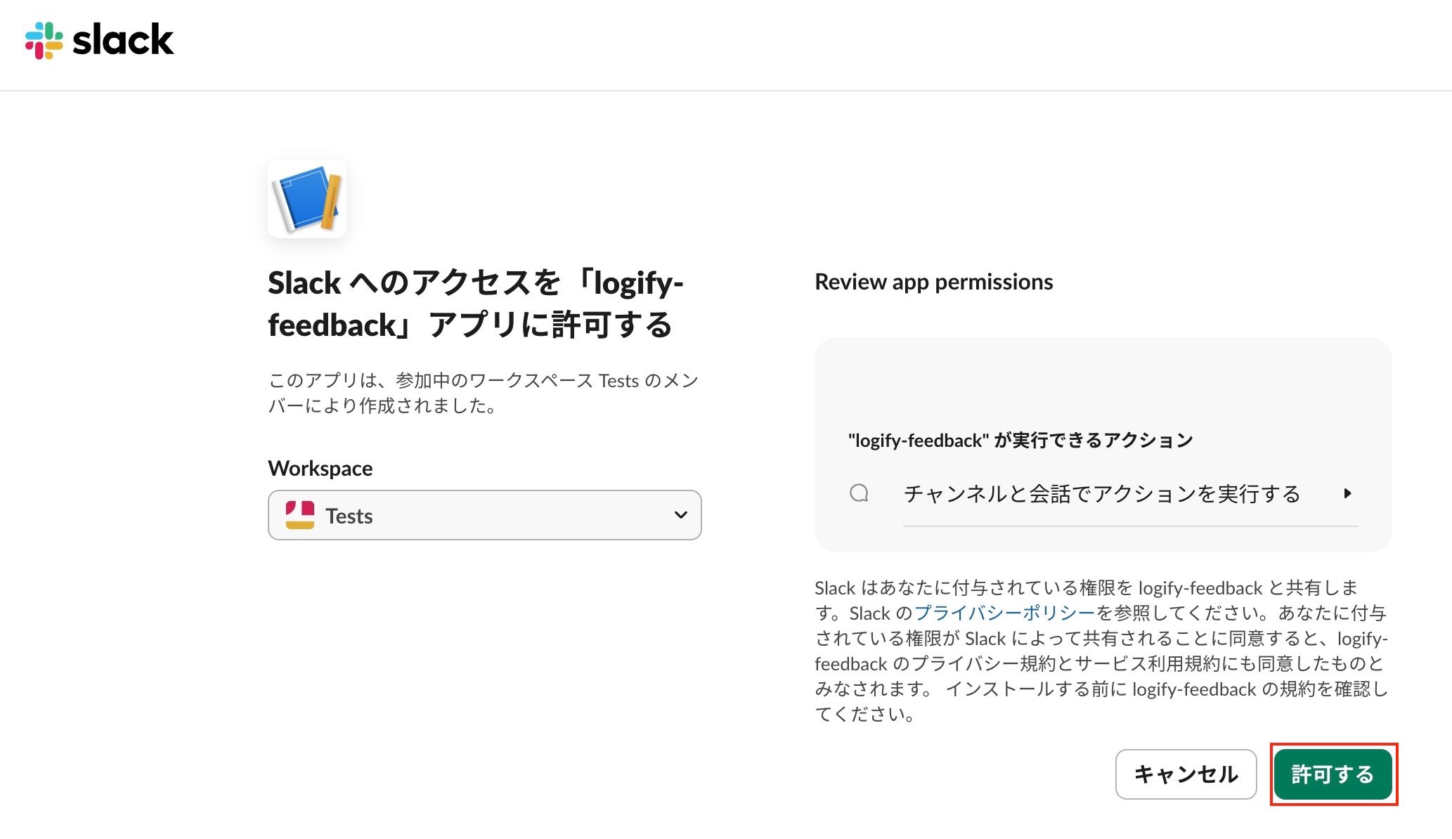 logify-feedback)を見つけて 追加 します。